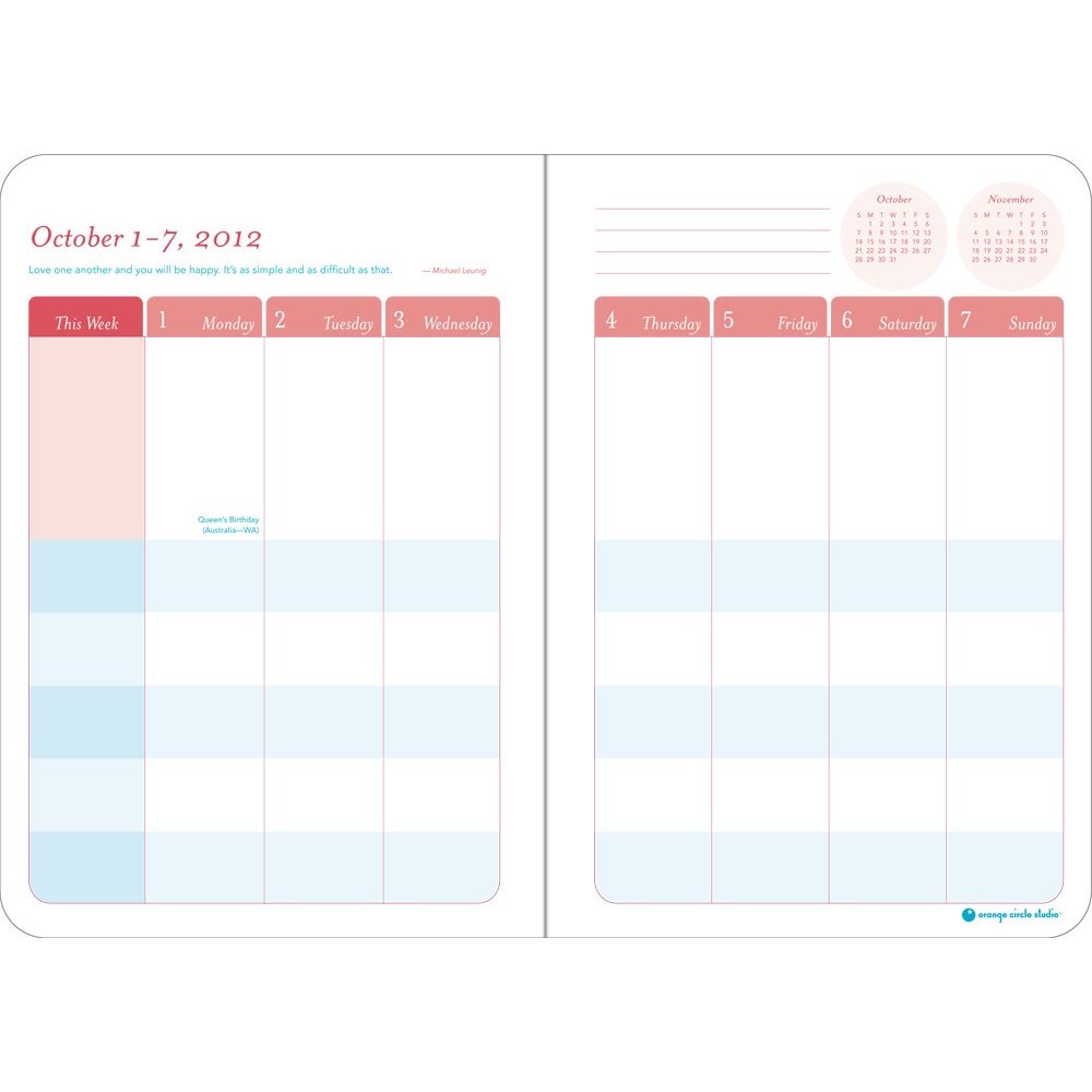 A friend of Dawn’s recommended Mom’s Weekly Planner by Peter Pauper Press. Doesn’t that Folk Art Birds print look pretty? According to the one picture of their weekly spread, it looks like the grid is divided into morning, afternoon, and evening. That’s not how I use my calendar, but it’s easy enough to cross out and change it to whatever you need. Because it’s hardcover, this planner should be sturdy and last you all year. This one is slightly bigger the above at 9.2 x 7.1 x 0.9 inches. Mom’s Weekly Planner is currently $13.59 on Amazon, but retails for $19.99 and also available in different colors.