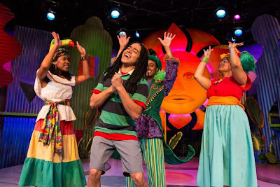 Have I convinced you to see the show yet? You’ll also see a giant puppet (SPOILER: it’s the Sun you see in the photos above), the best chase scene I’ve seen in a long time, and a gorgeous colorful set that will make you smile. Plus, it’s Jamaica, mon!